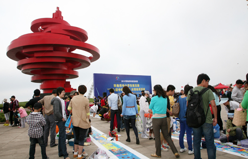 在青岛市标志性雕塑“五月的风”下,来自全市40多所中、小学校的100名学生参加了绘画比赛。在长长的画卷上,孩子们充分发挥想象力和创造力,用五彩缤纷的画笔描绘出心目中的海洋,表达对蓝色海洋世界的美好憧憬,抒发探索海洋奥秘的美丽梦想。