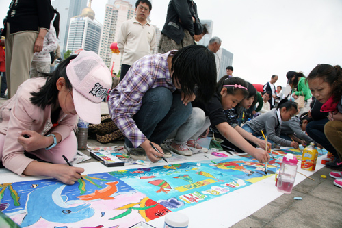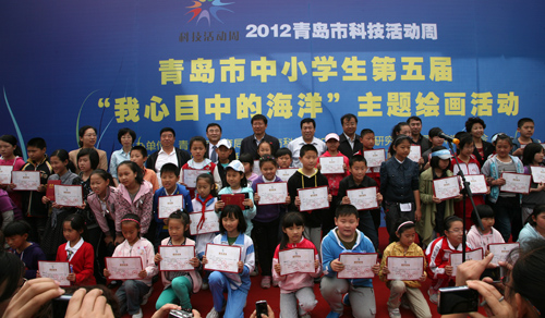 5月19日,在青岛市科技周期间,由中科院海洋所、中国海洋湖沼学会和青岛市少年科学院共同发起、组织的青岛市第五届中、小学生“我心目中的海洋”主题绘画比赛在青岛五四广场举行。