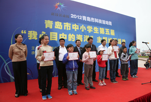 青岛市教育局、青岛市科技局、中科院海洋所、中国海洋湖沼学会、青岛市少年科学院等主办单位领导,共同为获奖的同学颁发了荣誉证书和奖品。