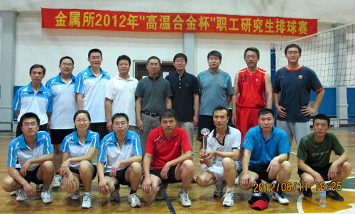 6月11日晚,金属所文体活动中心排球场响起阵阵助威声和呐喊声。球场上,主攻手一个接一个的猛烈扣杀,一传手的稳健接球和奋力拼抢,二传手的精妙传球,一次又一次赢得观众的热烈掌声和高声呐喊。随着高温合金研究部代表队和综合管理处代表队冠亚军巅峰对决的结束,金属所高温合金杯暨2011年度职工和研究生排球赛也圆满落幕。所长助理、工会主席孙晓峰研究员出席了赛后的颁奖仪式,高温合金研究部张健主任向获得冠军的球队颁发了奖杯。