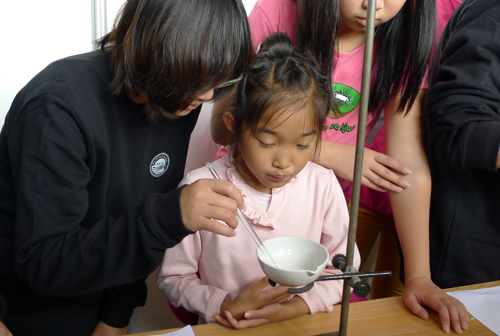 博士实践团志愿者指导同学们做实验