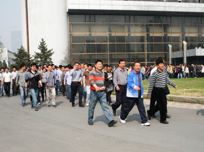 参加徒步走活动职工浩浩荡荡从所区大楼前出发