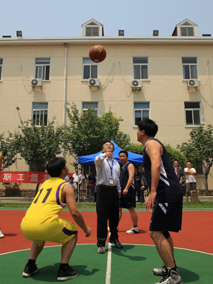 6月3日,海洋研究所2013年度职工篮球赛拉开战幕。党委副书记杨红生、工会主席王斌贵现场观看比赛。