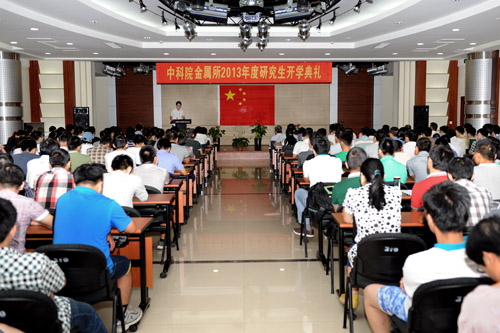 8月28日上午,金属所在研究生大厦举行了2013年度研究生开学典礼。所学位委员会主席李依依院士,委员叶恒强院士、胡壮麒院士、柯伟院士,副所长张哲峰研究员、张健研究员,以及导师代表杨柯研究员、徐坚研究员、张广平研究员等,新生班级辅导员代表吴欣强研究员、雷浩副研究员、刘冬副研究员和2013级全体新生出席了开学典礼,典礼由研究生部刘敏主任主持。