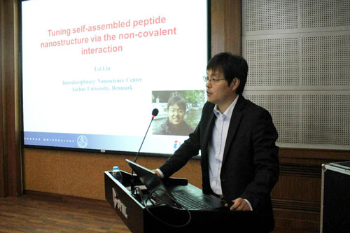 在9月进行的两次功能材料沙龙中,分别邀请到了福州大学的魏明灯教授及丹麦奥胡斯大学Interdisciplinary Nanoscience Center (iNANO)的刘磊博士作主题报告。魏明灯教授作了题为“纳米结构钛酸盐--能量转化与储存新电极材料”的报告;刘磊博士以“Tuning self-assembled peptide nanostructure via the non-covalent interaction”为题与所内青年职工进行交流,在报告前,刘博士还向沙龙成员介绍了丹麦奥胡斯大学及其所在课题组的相关情况。