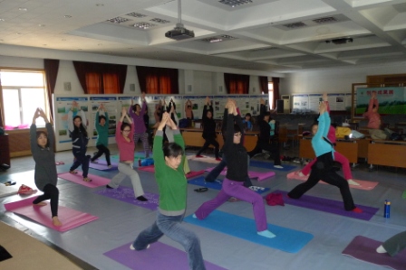 瑜伽活动在所女同志们中广受欢迎。经过生态所工会女工委的紧张筹划与精心准备,生态所瑜伽协会顺利成立,并在多功能厅成功举行了首场活动。近三十名同志参加了此次活动,多功能厅里“一席难求”。魏玉莲同志毛遂自荐承担起教练的职责,她精心准备,亲自示范,每一个动作讲授得有模有样。同志们一丝不苟,动作到位,展示了很高的水准。女同志们给予第一次瑜伽活动很高的评价,短短的一小时同样达到了瑜伽会馆里周身微汗有效放松身心的效果,缓解了紧张工作带来的疲劳与压力。