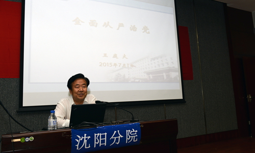 王启尧在总结中高度评价了王庭大同志的党课报告,报告对沈阳分院系统各单位深入开展“三严三实”专题教育具有重大指导意义。同时,王启尧代表沈阳分院党组要求沈阳分院系统各单位党委、全体党员和干部要深刻学习领会王庭大同志党课报告的实质和内涵,扎实推进本单位“三严三实”专题教育工作,坚持边学边查边改,突出问题导向,推动践行“三严三实”要求制度化、常态化、长效化,为本单位“一三五”规划、“率先行动”计划的顺利开展做出新的更大贡献。