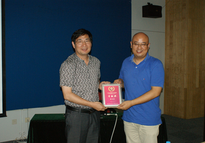 所长助理许国旺代表大连化物所为曹灵勇颁发了文化讲坛贡献奖奖牌。