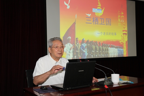 会上,杨汉黄少将做了题为“三栖卫国——一个老兵的故事”的报告,讲述了自己15岁参军,先后服役陆军、空军、海军,历经“抗日战争、解放战争、抗美援朝”,共计70年戎马生涯的革命历程,给大家上了一堂生动的爱国主义教育课。他勉励大家要铭记历史、珍惜现在、抓住机遇、努力奋斗,为国家的海洋科学事业做出新贡献。