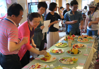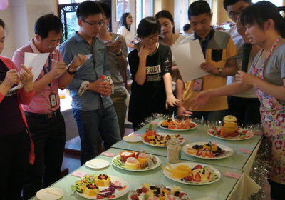 活动开始时,每支队伍选派一名队员在专业老师指导下学习如何包粽子,大家齐心协力成功制作了200多个粽子。在随后的“创意沙拉拼盘”比拼环节,各队的沙拉外观独特,别具一格,得到了评委和观众的好评。在之后的“Chinese-Creative奶冻”比拼环节,选手们更是创意爆棚,大家用奶冻、果酱及各种水果,创造出寓意深厚的中西式甜点,例如“扬帆起航”和“中巴友谊之城”等。