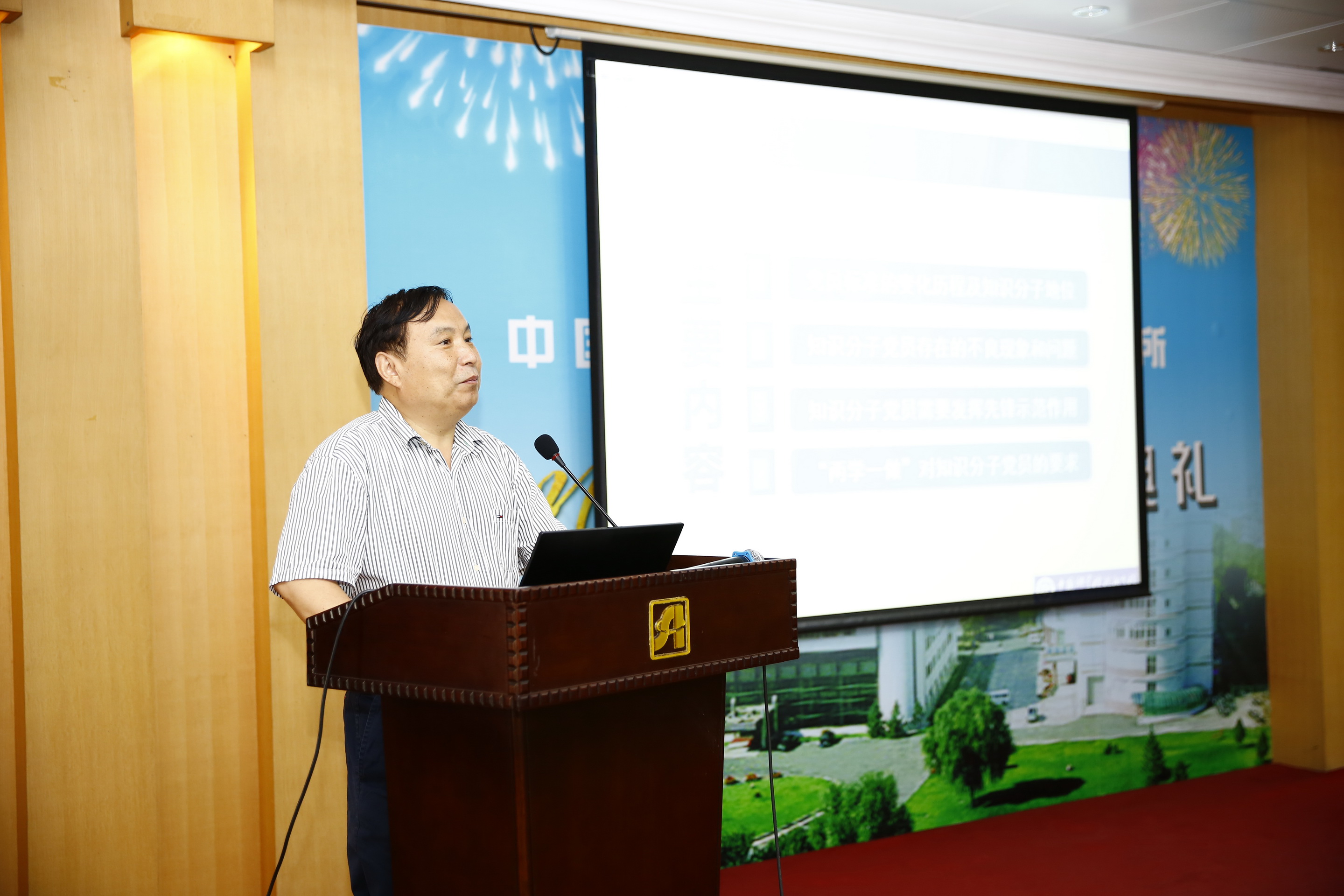 王启尧从党员标准的变化历程及知识分子地位讲起,以历史引入现实,剖析了部分知识分子党员存在的不良现象。他指出,知识分子党员需要发挥先锋示范作用,要有使命感和责任感,要在平时时刻“看得出”,关键时刻“站得出”,危险时刻“豁得出”。他结合一些知识分子党员的典型代表事例,阐述了“两学一做”对知识分子党员的要求,即做讲政治、有信念,讲规矩、有纪律,讲道德、有品行,讲奉献、有作为(简称:“四讲四有”)的合格党员。党课最后,他分享了一则讲述邓稼先科研事迹的感人视频。