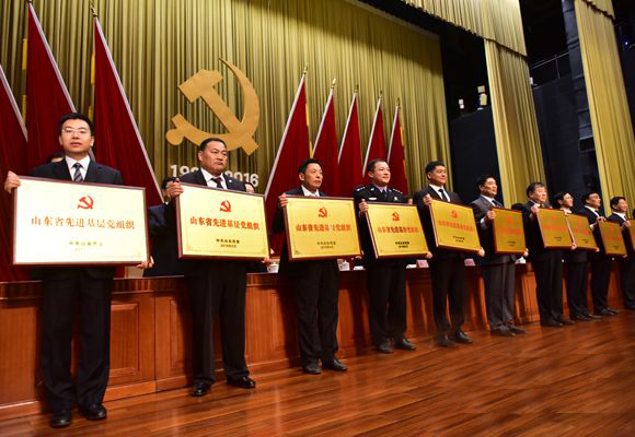 6月30日,山东省庆祝中国共产党成立95周年大会隆重举行?;嵋楸碚昧宋迥昀丛谏蕉「飨钍乱到ㄉ柚杏肯殖隼吹南冉愕匙橹陀判愎膊吃薄:Q笱芯克澄魑嗟菏锌蒲性核ㄒ换衽ノ?,被中共山东省委授予“山东省先进基层党组织”荣誉称号。