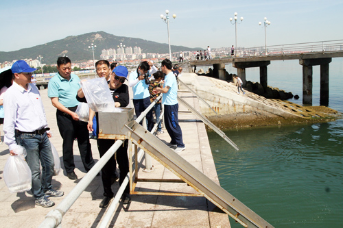 2017年6月4日,在全国“放鱼日”和“全国海洋宣传日”来临之际,中国科学院烟台海岸带研究所、烟台市海洋与渔业局在烟台莱山区黄海游乐城附近海域共同举办了“2017全国放鱼日、海洋宣传日”烟台主题活动。