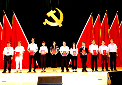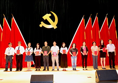 首先,会议举行了新党员入党宣誓仪式,16名新党员在领誓人党委委员、人事处处长孙军的带领下,面向党旗,庄严宣誓。