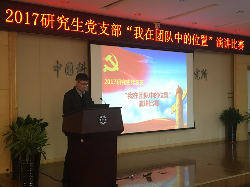 演讲比赛由研究生党总支书记苏华主持。经过精心准备,各位演讲者都充分展现了自己的语言魅力和对自己在团队中位置的充分理解。有的演讲激情洋溢,雄浑有力,呼吁年轻党员在科研工作中坚持不懈、砥砺前行;有的演讲娓娓道来,以富有磁性的声音和丰富的肢体语言使观众眼前一亮,阐述研究生党员应该明确自己的位置,并为团队的和谐健康发展传递正能量;有的演讲者饱含深情,从深刻缅怀“天眼之父”南仁东老先生讲起,深情打动观众的同时也让各位党员同志更加明确自己的社会责任。