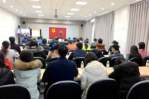 中科院烟台海岸带研究所党员同步收看本次辅导报告视频会。海洋研究所在职党员和研究生党员通过内网视频播放系统同步收看视频会议。