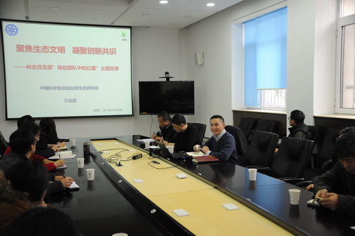 为了让科研党员结合实际工作,学懂弄通做实党的十九大精神,认真落实中科院党建工作领导小组关于开展“我在团队中的位置”主题讨论活动的要求,2017年12月28日,中国科学院沈阳应用生态研究所林业中心党支部召开党员大会暨组织生活会,副所长、党委委员方运霆给支部党员上专题党课。沈阳分院分分党组成员、副院长马越红,沈阳生态所党委书记金昌杰参加会议;沈阳生态所党办主任胡志斌、副主任宗文君列席会议。会议由支部书记王绪高主持。