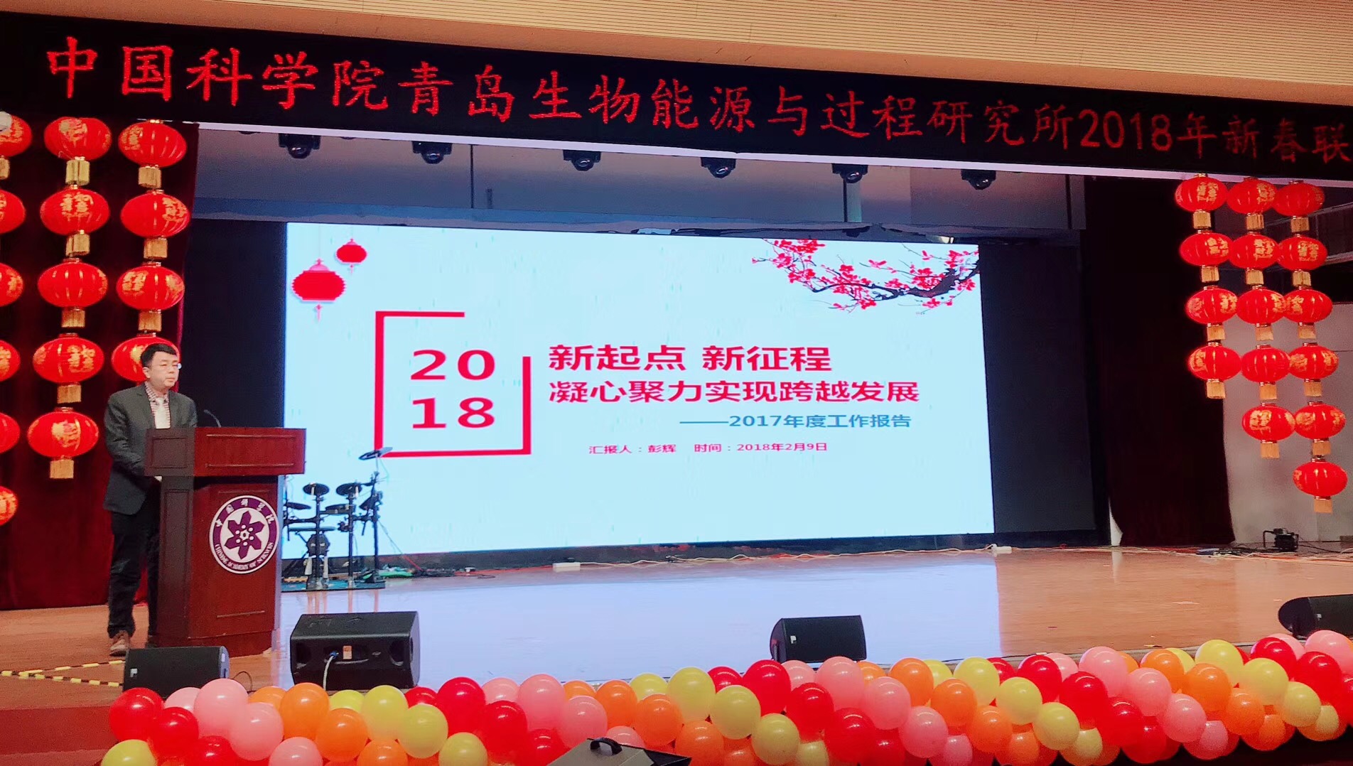 金鸡报晓去,瑞犬迎春来。2月9日,青岛能源所举行2017年度总结大会暨2018年新春联欢会。研究所党委书记、副所长彭辉,党委副书记、纪委书记冯埃生,副所长吕雪峰与全体师生欢聚一堂,相约2018。