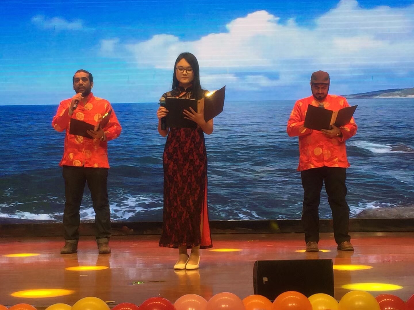 由大连化物所带来的新疆舞《我爱的人儿在新疆》拉开了联欢会的序幕。整台联欢会由17个文艺节目组成,集舞蹈、歌曲、相声、小品、诗朗诵、歌舞剧等于一体,形式多样。独唱《天边的骆驼》深情悠扬,二重唱《You raise me up》激昂高亢,《原乡人》、《月亮代表我的心》甜美醉人,乐队歌曲串烧嗨翻全场,小朋友们的歌舞表演活泼可爱;歌舞剧《多彩办公室》,舞蹈《时代在照唤》、《Panama》展现出研究所职工和学生朝气蓬勃、积极向上的精神风貌;相声《科研女博士》、视频歌曲《生科的意义》、《三句半》、小品《租个女友回家过年》、歌舞剧《年代秀》以诙谐幽默的方式讲述了科研工作者对工作、生活和人生经历的感悟以及对美好前程的展望;由八段锦爱好者带来《八段锦表演》、留学生代表带来的诗朗诵《面朝大海春暖花开》气势磅礴,赢得了台下观众的阵阵掌声,将祥和的节日气氛推向高潮。最后,晚会在以“爱”为主题的歌曲串烧中落下帷幕,通过现场观众投票产生了观众最喜欢的优秀节目,并在晚会进行了现场表彰。整台联欢会内容丰富,形式新颖,气氛热烈,精彩纷呈。大家在欢声笑语中辞旧迎新,扬帆起航,续写新的篇章。(文/王琳 图/研究所)