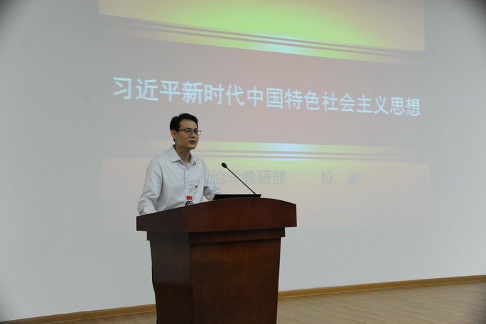 位涛副教授的报告分为习近平新时代中国特色社会主义思想产生的历史背景、习近平新时代中国特色社会主义思想的主要内容、习近平新时代中国特色社会主义思想的坚持和发展等三个部分。在讲述习近平新时代中国特色社会主义思想产生的历史背景时,位涛介绍了习近平新时代中国特色社会主义思想的形成和发展,以及世界大发展大变革的国际环境。在阐述习近平新时代中国特色社会主义思想的主要内容时,他分别从宏观、中观、微观等角度剖析了习近平新时代中国特色社会主义思想的内涵,明确了习近平新时代中国特色社会主义思想的根本宗旨,习近平新发展理念的涵义,解读了中国梦的内涵外延,以及“五位一体”总体布局、“四个全面”战略布局、“十四个坚持”基本方略等重要内容。最后,位涛副教授论述了如何坚持和发展习近平新时代中国特色社会主义思想,此外他还分享了自己学习和研究习近平新时代中国特色社会主义思想的收获和感悟。