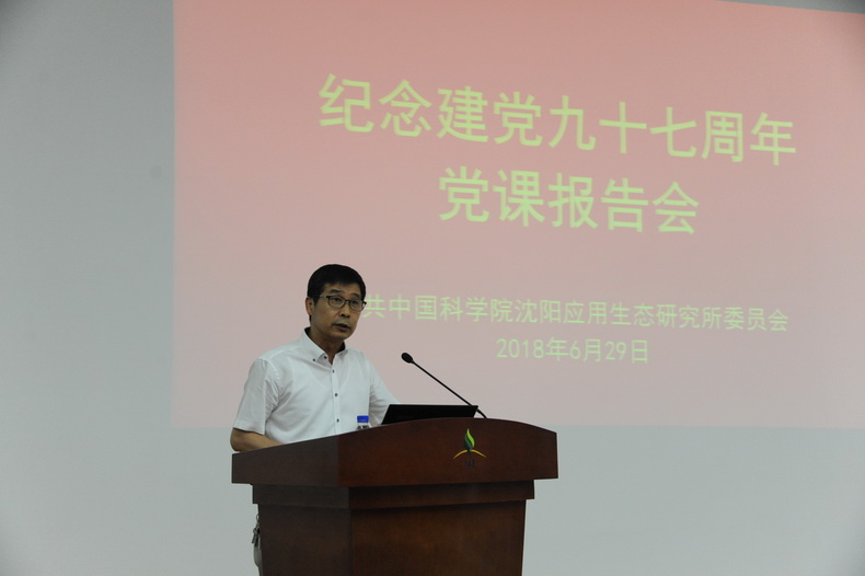 为纪念中国共产党成立97周年,深入学习领会习近平关于科技创新的重要思想,2018年6月29日下午中国科学院沈阳应用生态研究所党委在多功能厅举办党课报告会,邀请辽宁大学马克思主义学院教研室主任、十九大精神辽宁省宣讲团成员陈发水作“新时代、新担当、新作为”党课报告。研究所在职党员、离退休党和学生党员员130余人参加报告会。报告会由沈阳生态所党委书记金昌杰主持。