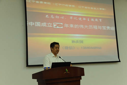 会议邀请辽宁省委党校孙庆国教授做“不忘初心、牢记使命——建国70周年伟大历程与宝贵经验”主题报告。报告紧密结合我国社会生产和生活实际,阐述了建国七十年来的历史性决策、取得的成就和经验,以及习近平新时代中国特色社会主义思想的理论基础和时代背景,同时对习近平新时代中国特色社会主义思想的整体架构和内容以及历史性贡献进行了精彩解读。报告理论性、实践性强,对于广大党员深刻把握习近平新时代中国特色社会主义思想的本质内涵、深刻理解我国现阶段步入新时代的历史任务和发展方向、推动“不忘初心、牢记使命”主题教育取得更大实效有很好的促进作用。