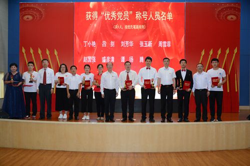 党委委员为优秀共产党员颁发证书和奖杯