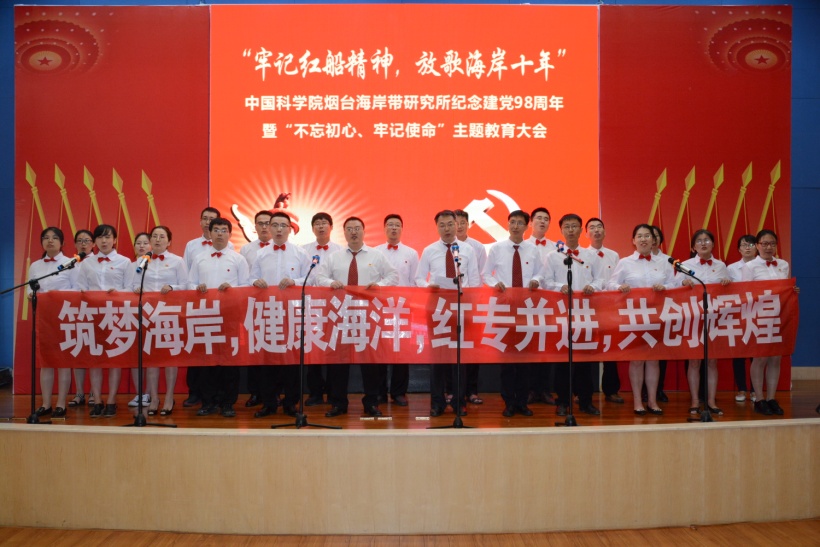 7月1日,中国科学院烟台海岸带研究所党委组织召开“牢记红船精神、放歌海岸十年”纪念建党98周年暨“不忘初心、牢记使命”主题教育党员大会,所党政领导班子成员、在所职工和研究生党员、入党积极分子、党外人士等160余人参加了大会。所党委副书记、纪委书记王晓斌同志主持会议。