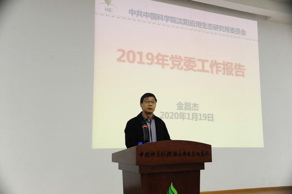 党委书记金昌杰代表所党委作2019年工作报告。他指出,2019年是中华人民共和国成立70周年,中国科学院建院70周年。在院党组、沈阳分院分党组及直属单位党委的正确领导下,沈阳生态所党委以全面贯彻落实习近平新时代中国特色社会主义思想和党的十九大会议、十九届一中、二中、三中、四中全会精神为主线,在全所党员范围内深入开展“不忘初心、牢记使命”主题教育,贯彻落实新时代党的建设总要求,以提升组织力为目标,大力抓好基层党建工作;围绕研究所中心工作,大力发挥党组织的战斗堡垒作用和党员的先锋模范作用;努力做好创新文化建设和群团、统战等工作,激发党建强大活力,为研究所改革创新发展提供了切实有效的政治、思想和组织保证。