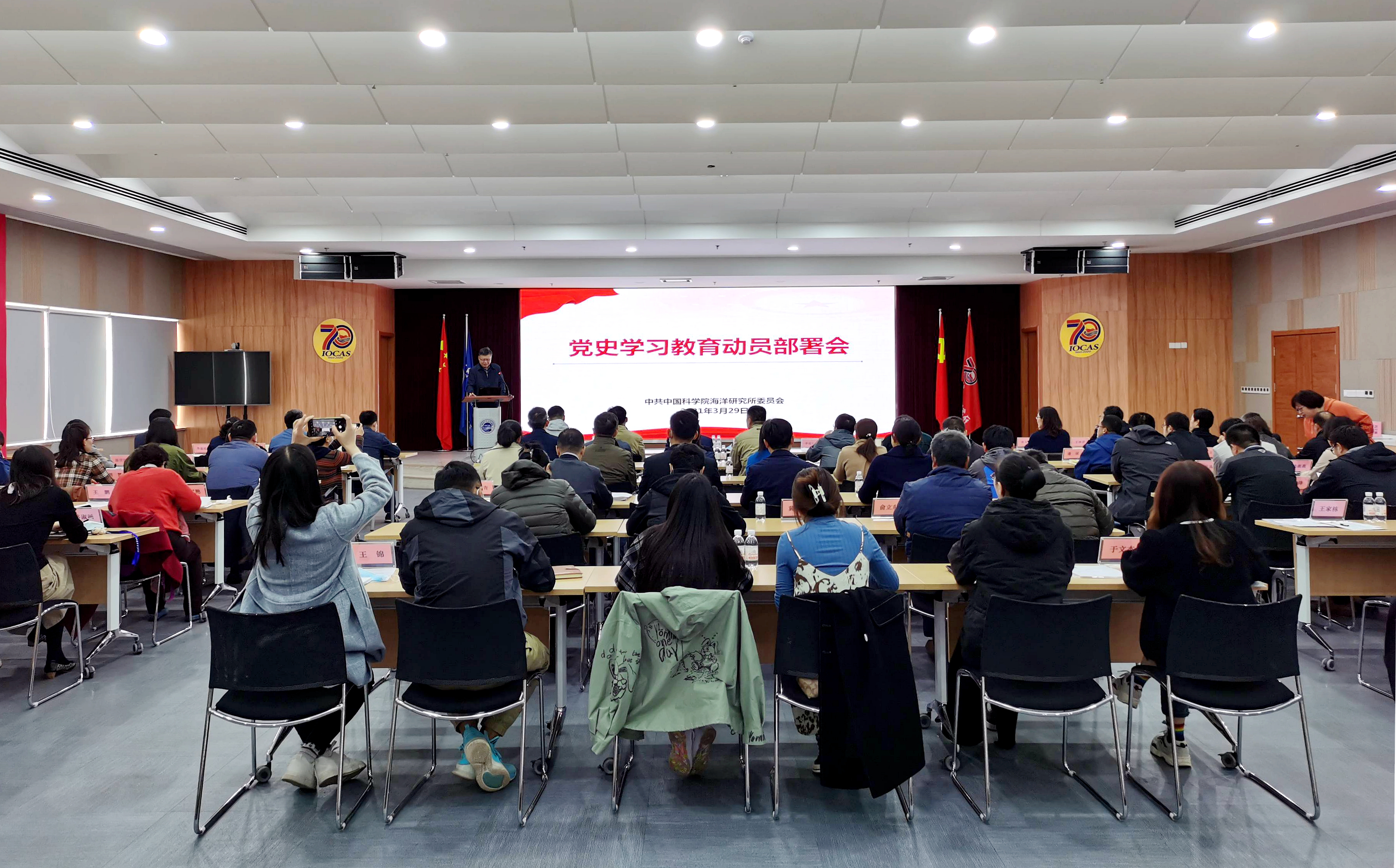 3月29日,海洋所召开党史学习教育动员部署会,党委书记、所党史学习教育领导小组组长王辉作动员讲话,全面传达学习贯彻习近平总书记在中央党史学习教育动员大会上的重要讲话精神、上级党组织关于党史学习教育的任务要求,对全所开展党史学习教育进行动员部署。党委委员、所长王凡,党委委员、副所长李超伦以及在所党委委员、纪委委员、处级以上领导干部、党支部委员、工会主席、团委书记等近100人参加会议。