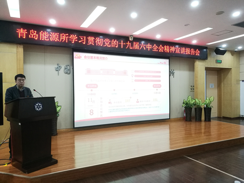 12月16日上午,青岛能源所召开学习贯彻党的十九届六中全会精神宣讲报告会,研究所党员、团员、民主党派及无党派人士、副处级以上领导干部、研究员、研究组组长等220余人参加了会议。会议由纪委书记李明主持。