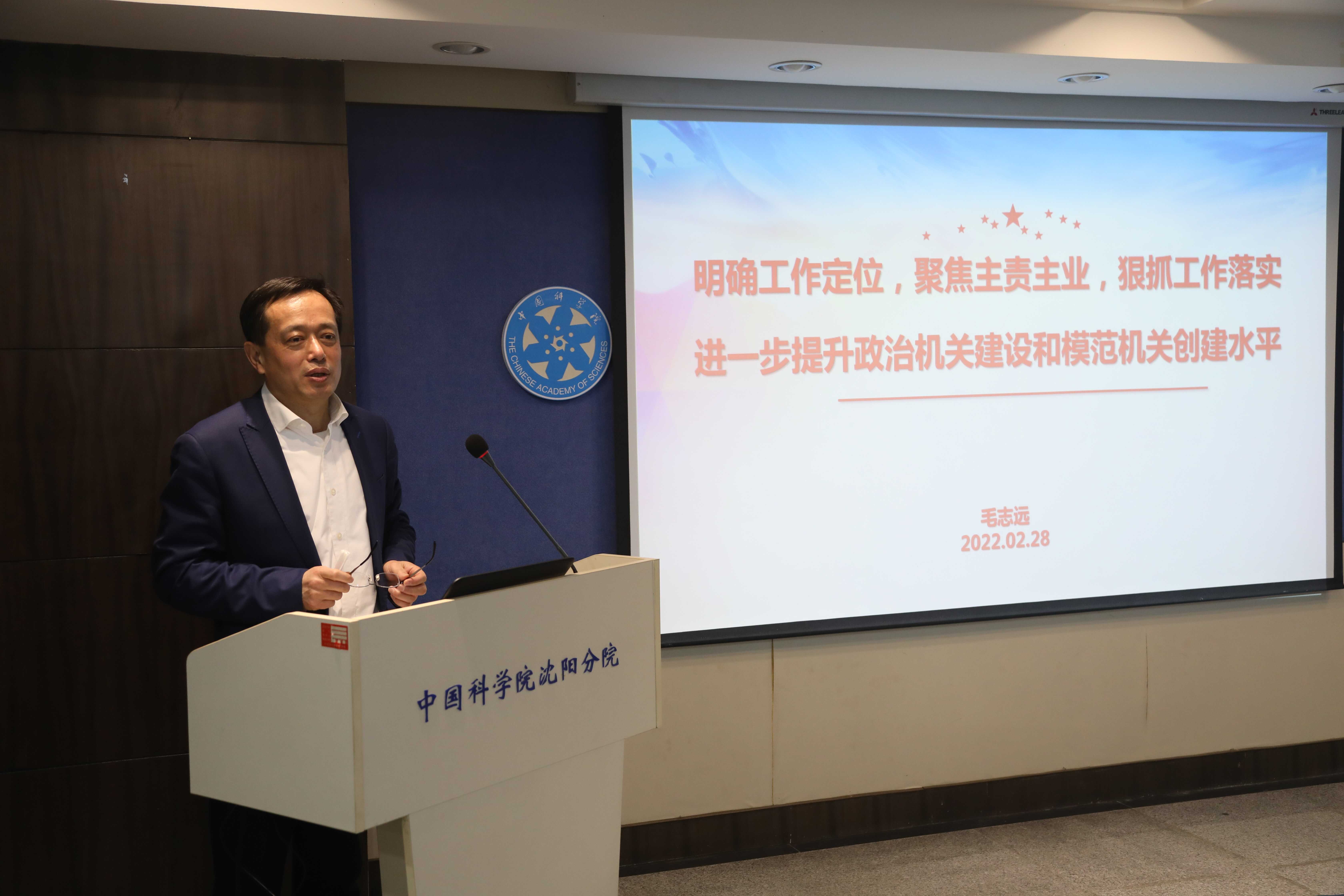 毛志远为机关全体作了题为《明确工作定位,聚焦主责主业,狠抓工作落实,进一步提升政治机关建设和模范机关创建水平》专题报告。报告围绕习近平总书记在历次中青年干部培训班开班式上的重要讲话精神、院党组对院和分院机关建设作出的系列部署、加强分院机关建设等三个方面进行详细解读,并对2022年度分院机关建设进行了工作部署。