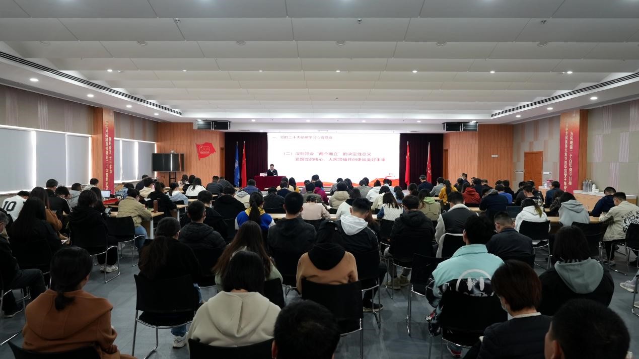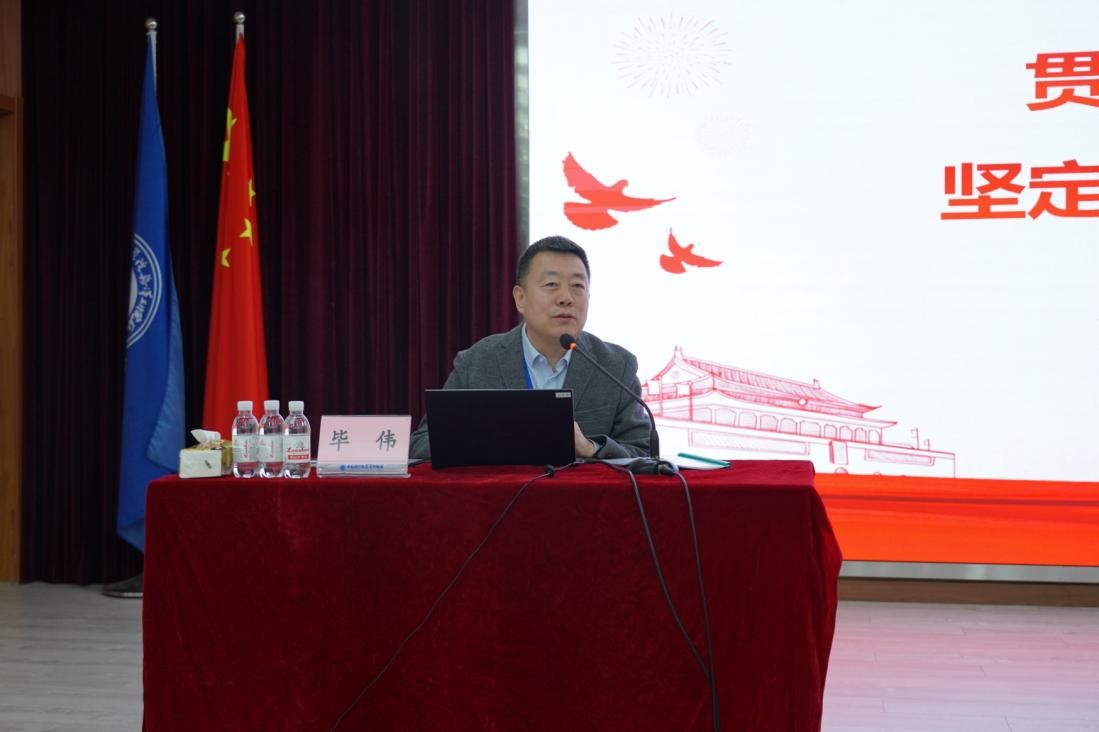 党委副书记、纪委书记毕伟以“学习贯彻党的二十大精神,推进全面从严治党”为题作报告,从坚持加强党中央集中统一领导、坚持不懈用习近平新时代中国特色社会主义思想凝心聚魂、完善党的自我革命制度规范体系、建设堪当民族复兴重任的高素质干部队伍、增强党的政治功能和组织功能、坚持严的基调强化正风肃纪等七个方面对党的二十大提出的健全全面从严治党体系进行了详细解读。
