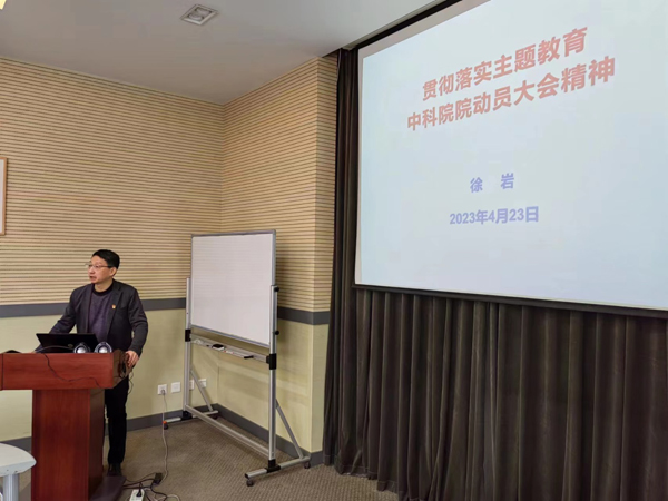 随后,徐岩作了题为“贯彻落实主题教育中科院动员大会精神”的主题报告。传达了院主题教育动员大会概况、工作部署情况,带领大家共同学习了院主题教育实施方案,并就制定我所主题教育工作计划和调研具体工作方案提出整体思路。他指出,处级以上人员要深入学习领会习近平总书记关于科技创新的重要论述和对我院的重要指示批示精神,紧密围绕我院科技创新实际和职责定位,结合实现高水平科技自立自强的目标要求,重点关注科技创新、体制机制改革和职工群众急难愁盼等问题,结合所党委前期调研成果,找准深入调查研究的切入点、着力点和落脚点,主动认领、扎实整改,着力解决理论学习、政治素质、能力本领、担当作为、工作作风、廉洁自律等6个方面的突出问题。