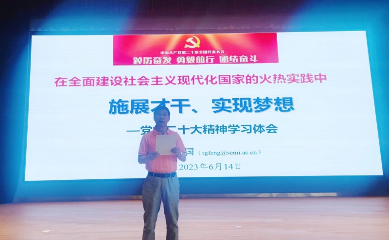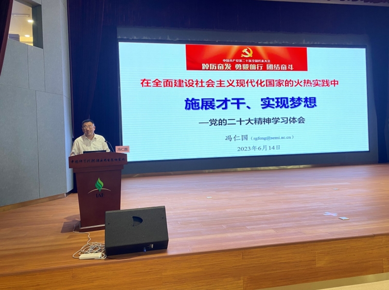 6月14日,沈阳生态所组织召开主题教育学习报告会,会议邀请了中国科学院半导体研究所党委书记、副所长冯仁国研究所员作 “在全面建设社会主义现代化国家的火热实践中施展才干、实现梦想——党的二十大精神学习体会”主题报告。党委委员、纪委委员、中层干部、党支部委员、科研骨干、青年职工、全体研究生180余人参加报告会。报告会由党委书记金昌杰主持。