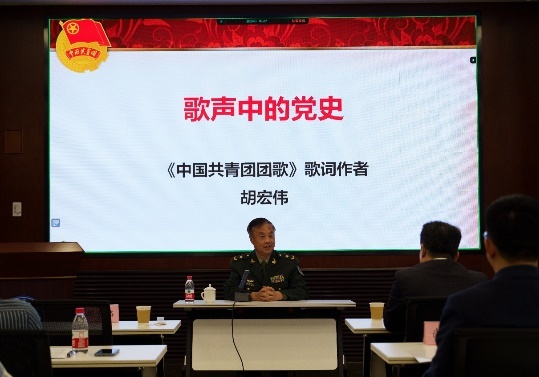 会议邀请《中国共青团团歌》词作者、国家一级编剧胡宏伟将军作《歌声中的党史》专题报告,分享其创作的心路历程,唱响党史中的光荣故事,让艺术走进研究所,用党史浸润初心。胡宏伟现场朗诵并介绍了《光荣啊,中国共青团》《半条被子》《老兵,今天接你回家》《长江之歌》等歌词作品,深情讲述了这些脍炙人口歌词的创作过程。他表示,我们每个人都和党的事业融合在一起,就像一朵朵浪花汇成了党史的长河。此外,胡宏伟将其创作的红色经典作品与百年党史相结合,以史串歌、以歌叙史,层层递进、娓娓道来,讲述了红军长征“半条被子”、抗美援朝忠烈、汶川地震战士们“宁肯饿断肠、不动救济粮”等故事,将创作历史背景和感人肺腑故事一一展现。参会人员纷纷表示,通过此次报告会,能够从多形式、多角度去感悟伟大建党精神,在歌声中学思想、忆初心、强党性,从音乐中汲取前进的智慧和力量,进一步激发抢占科技制高点的热情,积极为研究所高质量发展作出新的更大贡献。
