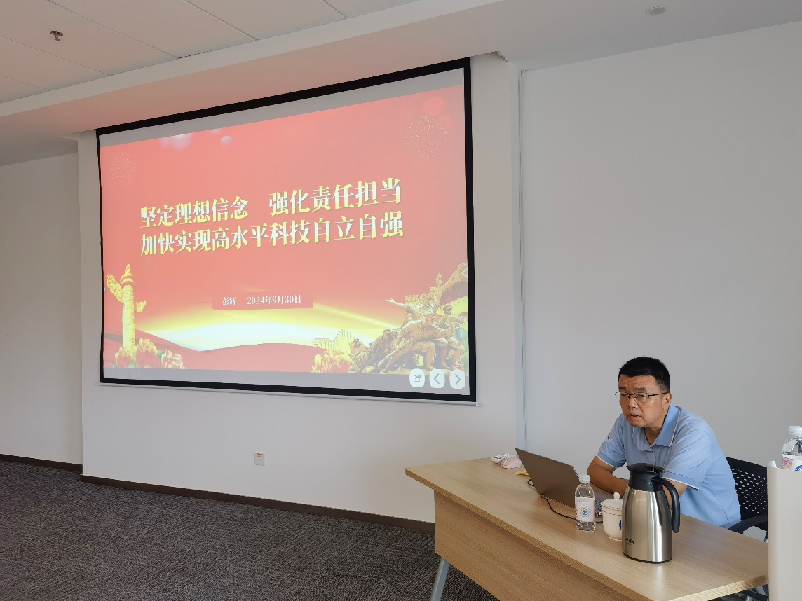 彭辉做《坚定理想信念 强化责任担当 加快实现高水平科技自立自强》专题党课报告,从“中国共产党的百年光辉历程、中国科学院的创新发展之路、新征程上奋力实现高水平科技自立自强、研究所内部创新价值链与科技发展”四个方面展开了介绍,指出要积极运用党的创新理论,切实从科技创新需求出发,以促进党中央、院党组决策部署的贯彻落实为核心,聚焦加快抢占科技制高点任务,坚定理想信念,志存高远、脚踏实地,推动科技创新的高质量发展。
