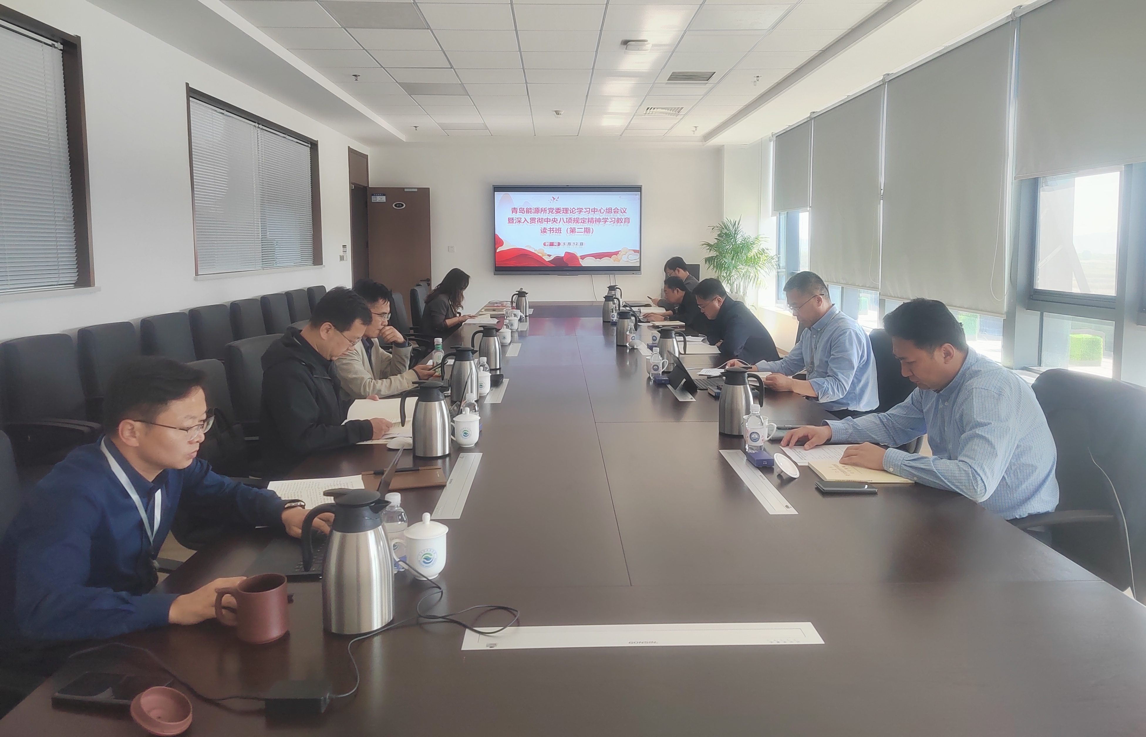 5月12日,青岛能源所召开党委理论学习中心组学习会暨深入贯彻中央八项规定精神学习教育读书班第二次学习。所长、党委书记吕雪峰主持会议,全体党委委员参加会议。