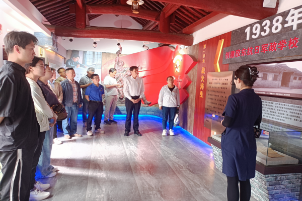 在栖霞胶东抗大精神教育基地,党员们依次参观了“烽火摇篮”“忠诚信仰”“薪火相传”等主题展室,通过珍贵的历史影像、实物展陈和互动体验,深入了解了胶东抗大在极端艰苦条件下坚持“战争中学习战争”的奋斗历程。抗大师生“把课堂搬到战场”的实践精神、“向科学要战斗力”的创新理念,与当前科研攻关面临的挑战高度契合,使参加活动成员深受启发。在王懿荣纪念馆,通过参观“甲骨之父”“忠烈千秋”等展厅的珍贵文物,大家深刻学习了王懿荣先生“学术报国”的崇高品格,其“吾义不可苟生”的绝笔信与严谨治学的科学态度,为科研人员树立了榜样力量。