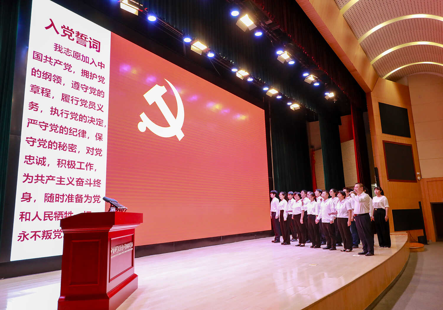 首先,大会进行新党员入党宣誓仪式,新加入党组织的预备党员在党委委员王书诏的带领下,面向党旗,庄严宣誓。