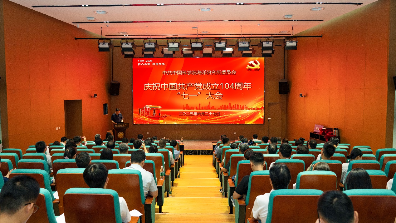 6月27日,海洋所召开中国共产党成立104周年“七一”大会。所党政领导班子成员、所务委员、党委委员、纪委委员、中层干部、党支部书记、党员代表、群团组织代表、特邀民主党派和无党派人士代表、受表彰集体及个人等100余人参加会议?;嵋橛伤澄榧?、副所长王辉主持。