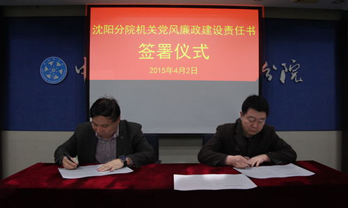 按照院党组关于加强中科院党风廉政建设的总体部署,1月末沈阳分院已组织分院院长、党组书记与系统各研究所所长、党委书记分别签订了个性化反腐倡廉建设责任书、党风廉政建设责任书。此次,分院领导班子成员与机关各部门负责人签订党风廉政建设责任书,是按照沈阳分院党风廉政建设责任制实施细则的要求,扎实抓好“两个责任”落实的又一具体措施。