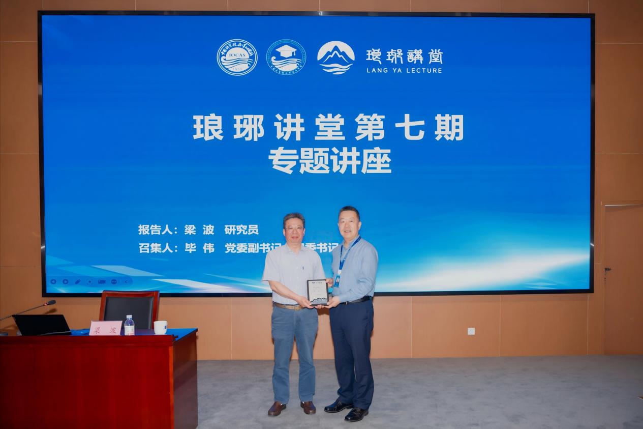 会议期间,党委副书记、纪委书记毕伟为梁波研究员颁发了“琅琊讲堂”纪念牌。
