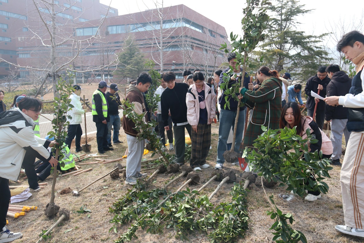 来自海洋学院16个班级的30余名志愿者参加了活动,在专业技术人员的指导下,志愿者们分成若干小组,分工协作,有的挥锹铲土,有的扶苗培土,有的围堰踩实,每道工序紧密衔接、配合默契,在这春意盎然的日子里,青年的朝气与树苗的生机相互辉映,共同绘就了一幅动人的画卷。