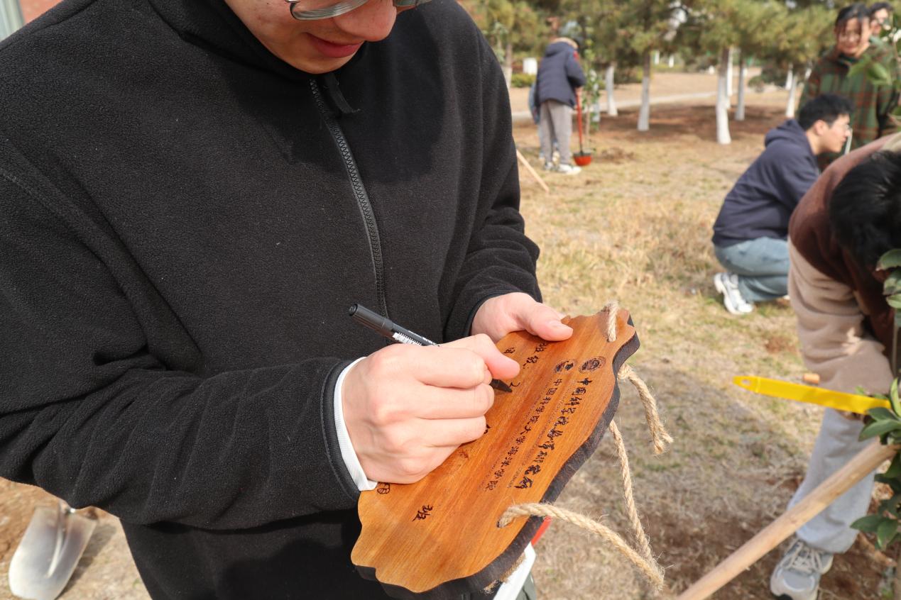 经过大家的辛勤劳动,代表着16个班级的16棵金桂树苗被成功栽种,志愿者们亲手书写并悬挂班级铭牌,把绿色希望和志愿精神厚植在了这片校园的沃土上。