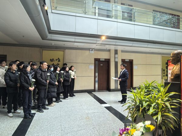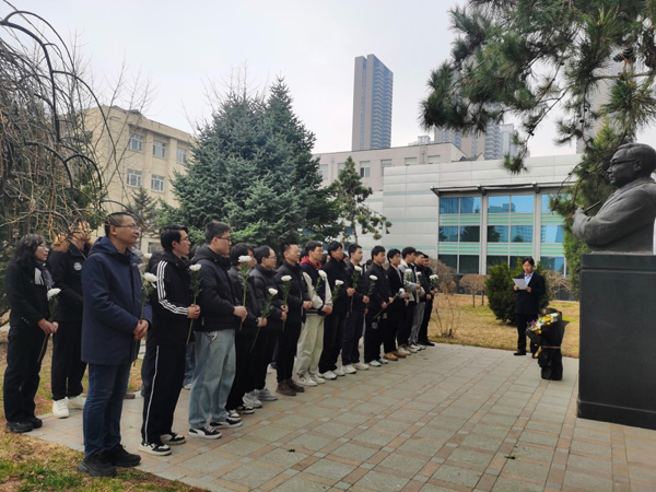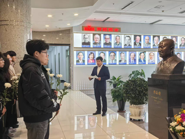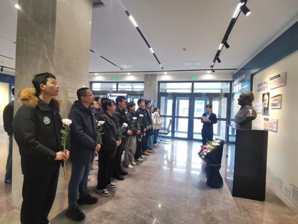 青年代表分别为李薰先生、葛庭燧先生、师昌绪先生、郭可信先生雕像敬献花篮,青年职工和研究生向雕像敬献了菊花,大家向雕像鞠躬,一起缅怀为中国材料科学事业和金属所发展奉献毕生心血的老一辈科学家。