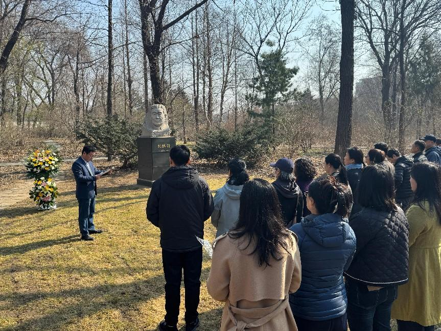 最后,金昌杰作总结讲话,他指出,沈阳生态所组织清明瞻仰刘慎谔先生雕像活动,是传承老一辈科学家精神、弘扬“林土精神”的重要举措。此次活动旨在缅怀老一辈科学家,进一步传承和弘扬“林土精神”,激励后人努力抢占“应用生态学领域”科技制高点。他希望全所干部职工和研究生深入了解刘老的生平事迹和科研成就,深刻感受刘老的精神风貌,并将这种科学家精神传承下去。他鼓励大家学习刘老无私奉献的报国情怀、一丝不苟的治学态度以及甘为人梯、奖掖后学的育人精神。他号召全所干部职工、研究生继续大力传承和发扬“林土精神”,弘扬新时代科学家精神,自觉肩负起科技报国的职责使命,聚焦“四个率先”和“两加快一努力”目标要求,紧扣生态文明建设国家战略科技力量主力军使命定位,努力抢占科技制高点,深入推进党建与科技创新双融双促,奋力开创研究所改革创新发展新局面。