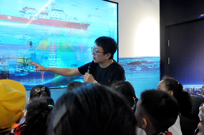 在海洋人工智能与大数据中心,科研人员用深入浅出的讲解语言,使用多媒体的形式向同学们介绍了海洋人工智能与大数据在海洋科学研究中的应用,展示了“发现”号ROV在深??瓶际迸纳愕母咔迨悠?,激发了同学们对海洋学习的强烈兴趣。