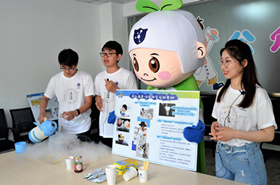 在云游青能所环节,科研人员认真准备了各类科学实验,内容涉及生物、化学化工、材料等科学知识。研究所公众科学日吉祥物“清清”也在本次活动中首次亮相,公众在“清清”带领下探秘实验室,包括小小锂电池潜力无限大,瓶中彩虹,蛋白质的变形记,网红“液氮冰淇淋”背后的奥秘,金谷棒勇闯火焰山、八卦炉内炼乌丹,小小“魔术藻”的“跨界”传奇,“高个子”和“矮胖子”??蒲腥嗽蓖ü笛檎故竞驮斫舛两蒲е洞莞冢惫坌蜗?、生动有趣。