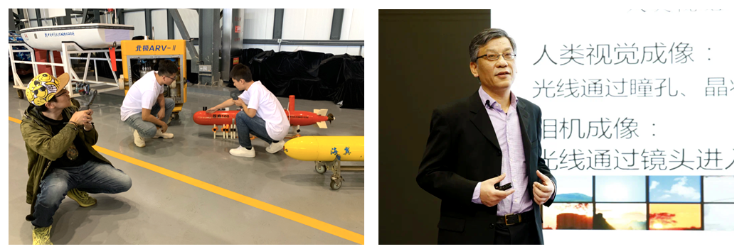 依托于沈阳自动化所的机器人学国家重点实验室通过网络直播的方式面向受众敞开大门。在23日上午的直播活动中,观众们了解了机器人学国家重点实验室的发展历程,观看了“灵豹”便携式快速组合排爆机器人、室内巡逻机器人和两款应用于地震救援的搜救机器人演示,并在主播的带领下走进纳米实验室,参观与聆听了在微纳操控与类生命机器人方面开展的科研工作。在下午的直播活动中,“勇士”号无人水面艇、“海鸥”号帆船、北极ARV、探索100AUV,“海翼”水下滑翔机、“潜龙一号”和“潜龙二号”AUV、“龙珠”号ROV、“海斗”号水下机器人列队亮相,研发者们通过镜头向观众进行了介绍与分享。为更好满足需求,研究所科技成果展馆VR展厅于24日上线启用。在“科学公开课”环节,机器人学研究室唐延东研究员在题为《光、成像、图像处理》的报告中介绍了光和成像的基本原理,和复杂光照及坏天气下图像处理的应用; 数字工厂研究室周晓锋副研究员在题为《万物皆算法》的报告中分享了算法的“前世今生”,以及在图像识别、自动驾驶、机器博弈等方面的应用。在“科技影音厅”环节,在研究所微信公众号发布了《中国机器人之父——蒋新松》和《驯“龙”高手——刘开周》两部弘扬科学家创新、拼搏与奋斗精神的影片 。
